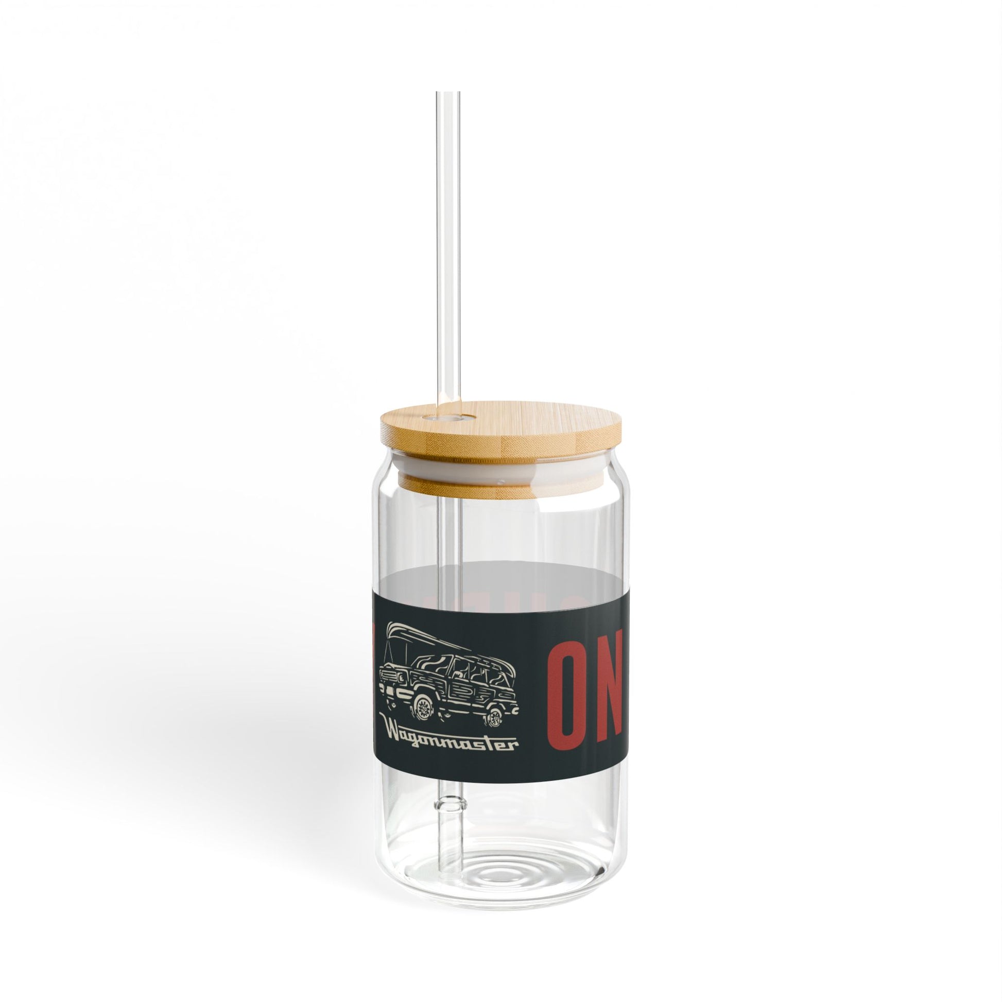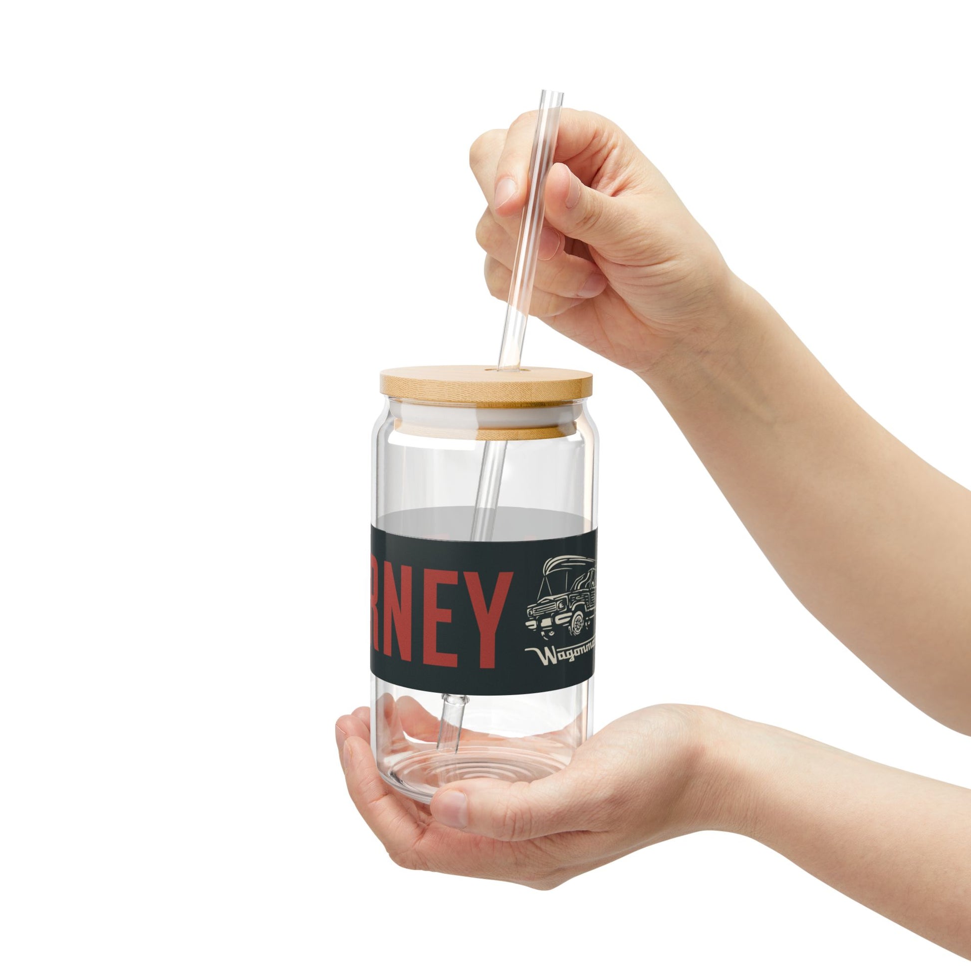 16oz Glass Sipper with Bamboo Lid — 'Journey On' Travel-Ready Straw Tumbler - Burgundy