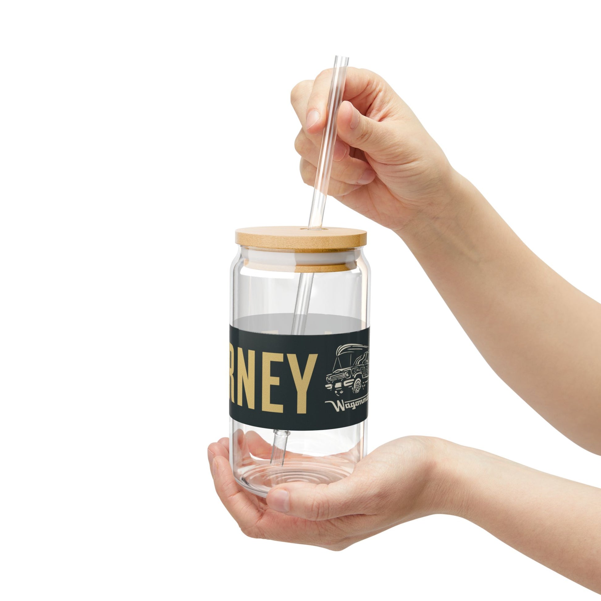 16oz Glass Sipper with Bamboo Lid — 'Journey On' Travel-Ready Straw Tumbler - Tan