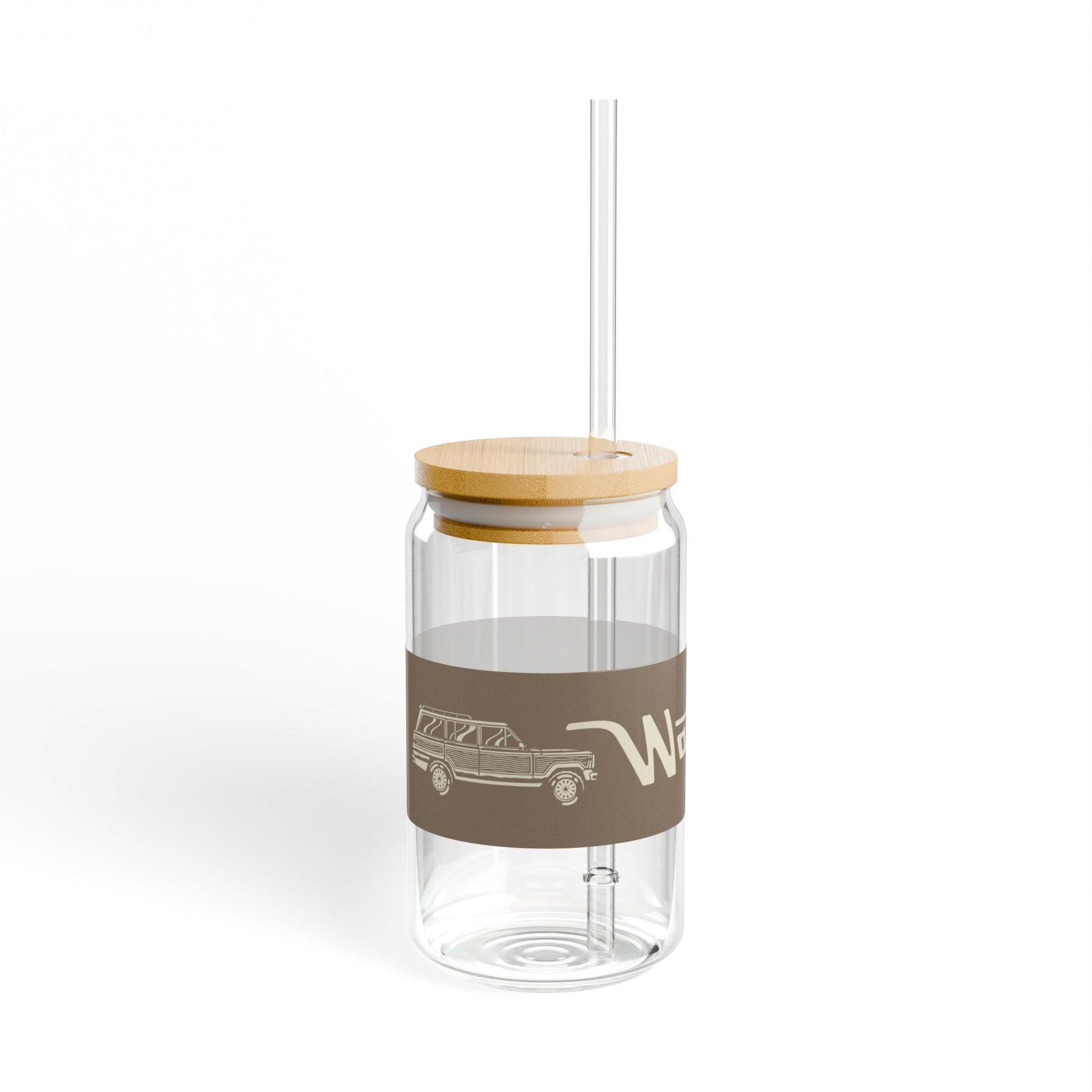 16oz Glass Sipper with Bamboo Lid — 'Wagonmaster' Travel-Ready Straw Tumbler - Tan