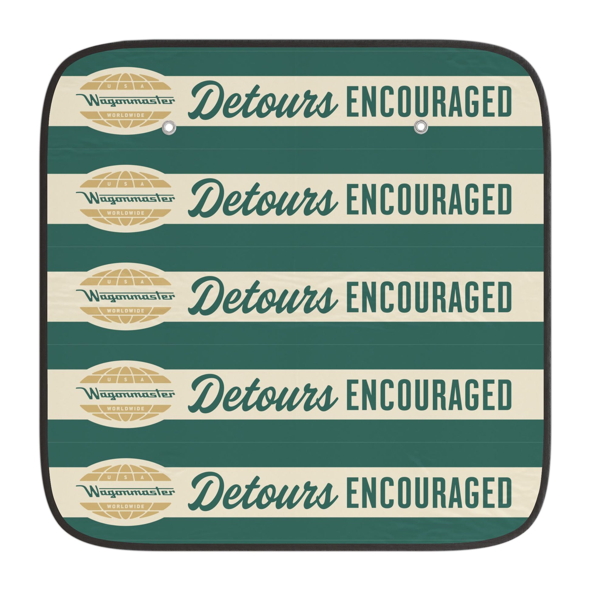 Detours Encouraged Car Sun Shade — Retro Roadtrip Windjammer Design