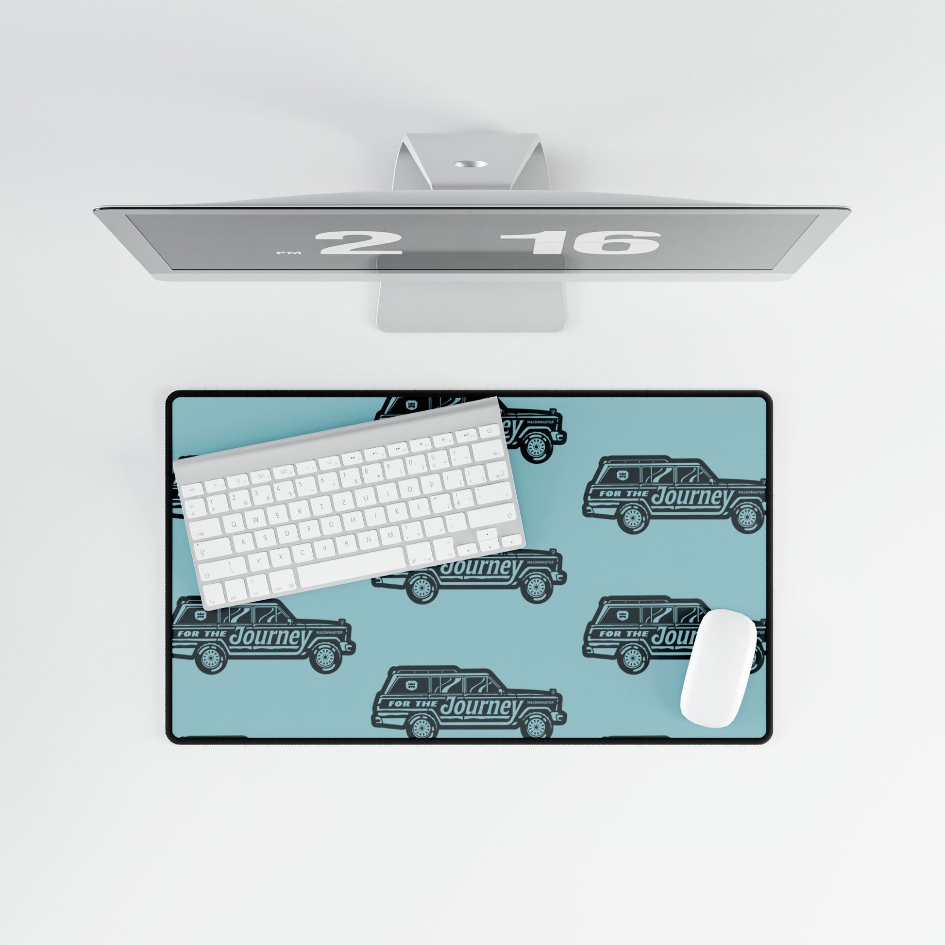 Slide this desk mat across your workspace and feel the calm of a slow road trip settle in. A subtle repeat of vintage vans in muted blues gives your desk a relaxed, retro vibe without shouting for attention. The soft, low-friction surface makes mouse movement effortless, while the textured rubber base holds everything steady through long design sessions, late-night browsing, or planning your next getaway. Its anti-fray stitched edge and durable polyester top mean the pattern stays crisp and the mat stays intact after months of daily use. Choose a size that fits your setup — from compact to full keyboard-and-mouse coverage — and bring a little wandering spirit to your desk routine.